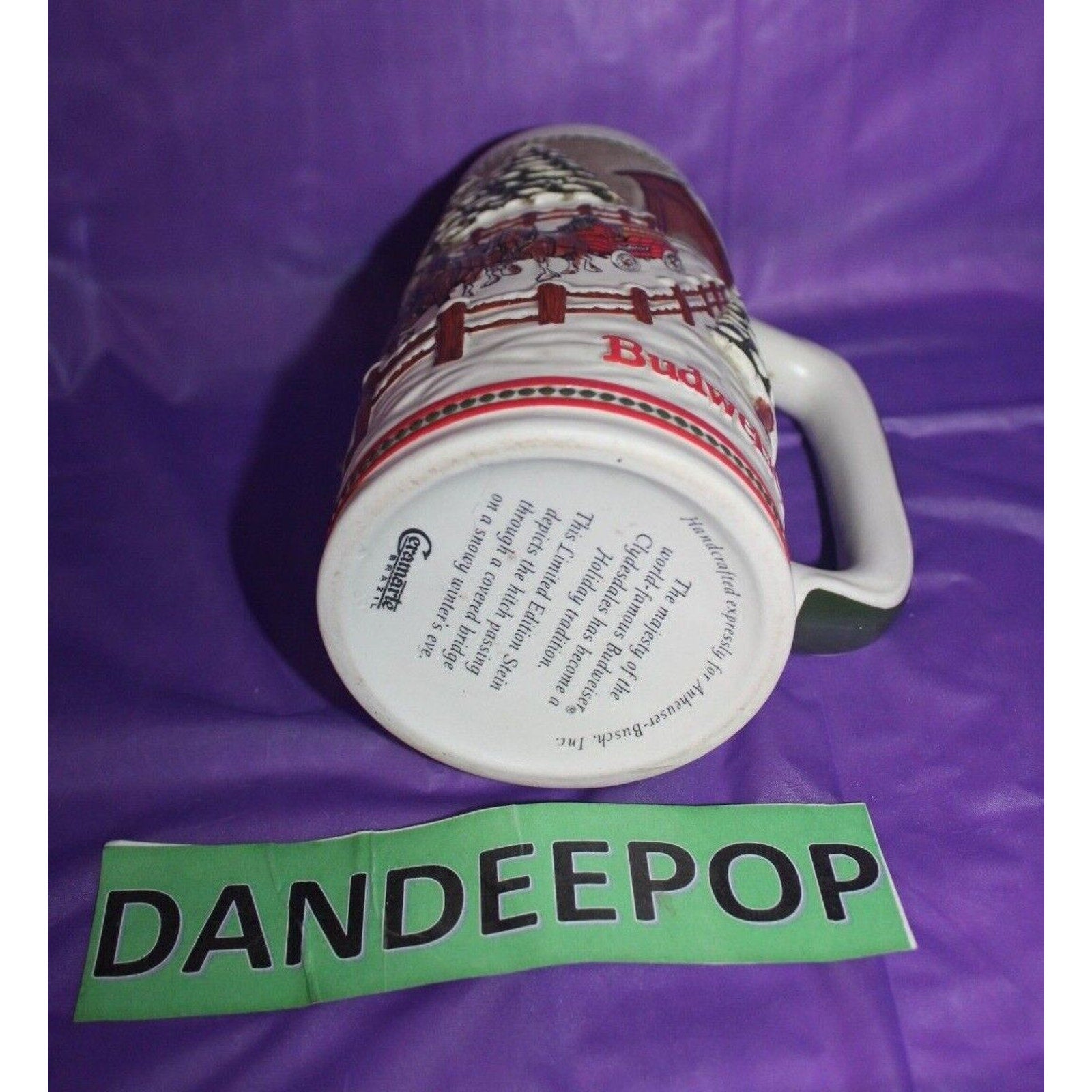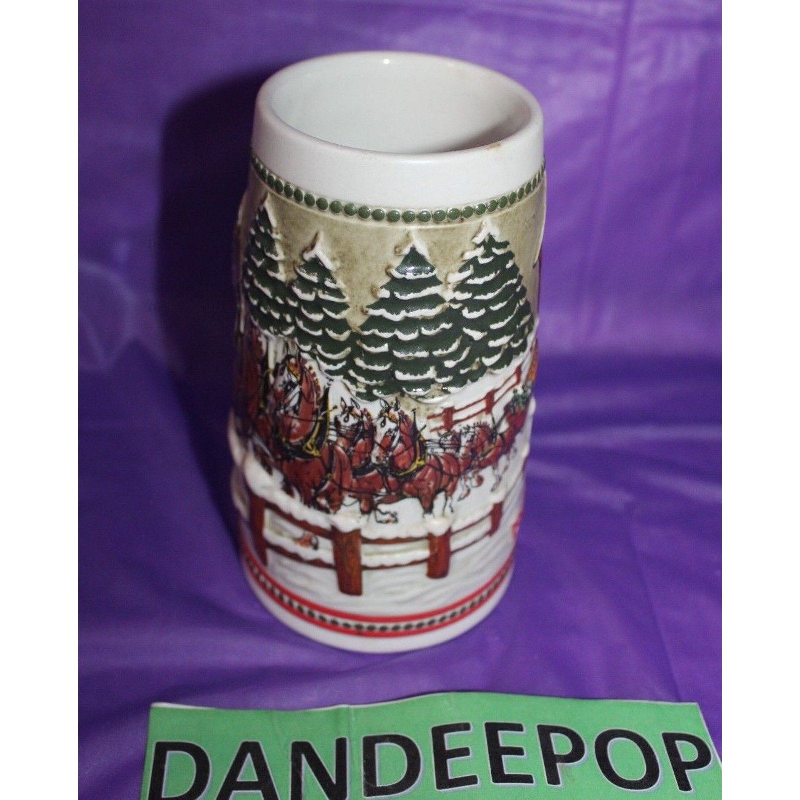 Vintage Anheuser Busch Budweiser Hitch Passing Through A Covered Bridge Snowy Winter's Eve, Handle has more visible glue marks than others Limited Edition Holiday Stein Mug Drinkware, Ceramarte. Dirty from storage, needs cleaning. Measures About 6.5" Tall 3" diameter, unused, just kept on display. Comes Exactly As Seen. See my store categories for many other items. Find this in my Beer Steins And Drinkware category
