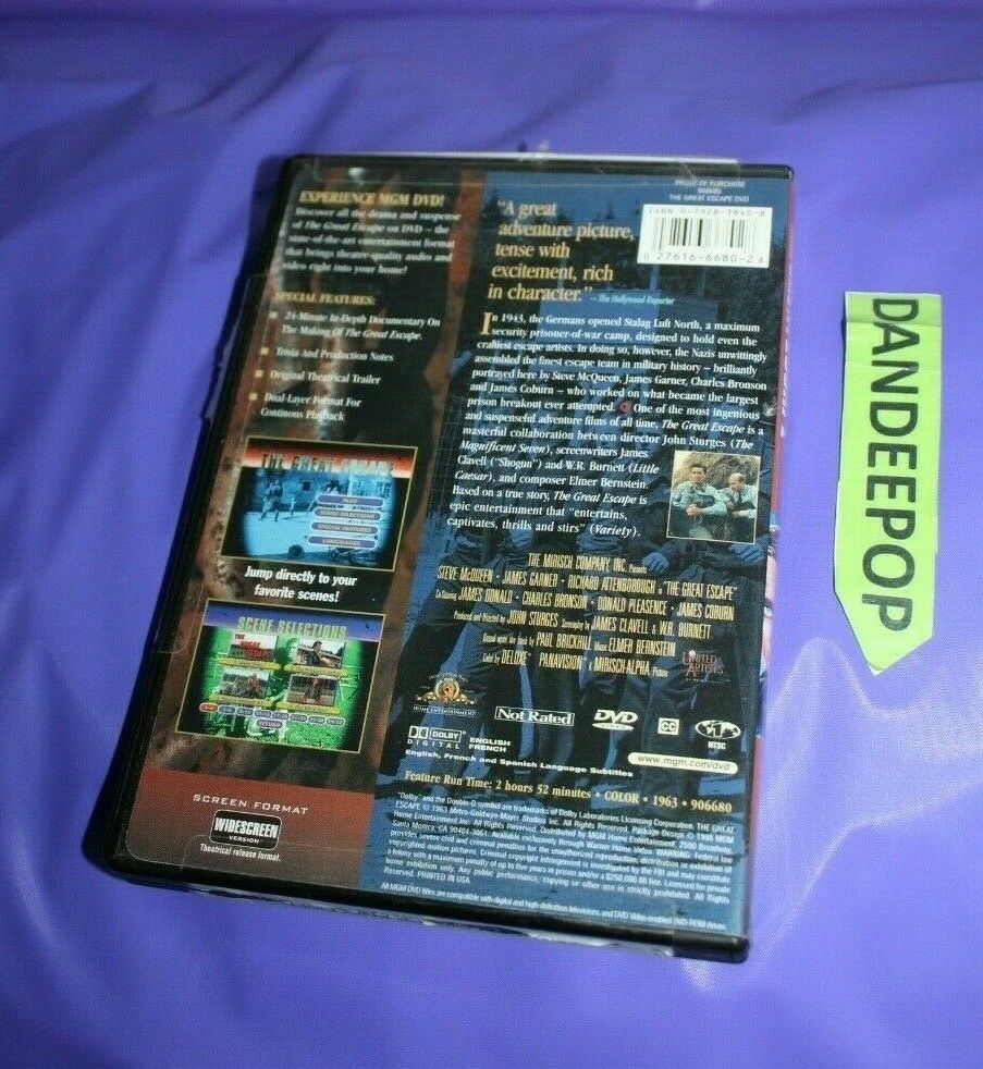 The Great Escape DVD Movie, This Does Not match the stock photo. Has typical surface play scratches, plays well, case has minor wear. Find this in My Movies category Payments must be received within 3 days of auction end. Feedback will be given upon receipt of good feedback. FREE US Shipping Media Mail Click Here to See My Other Auctions ORSBLAST1TTE |